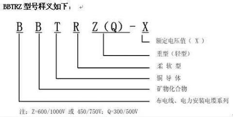 BBTRZ電纜型號規(guī)格解釋:
